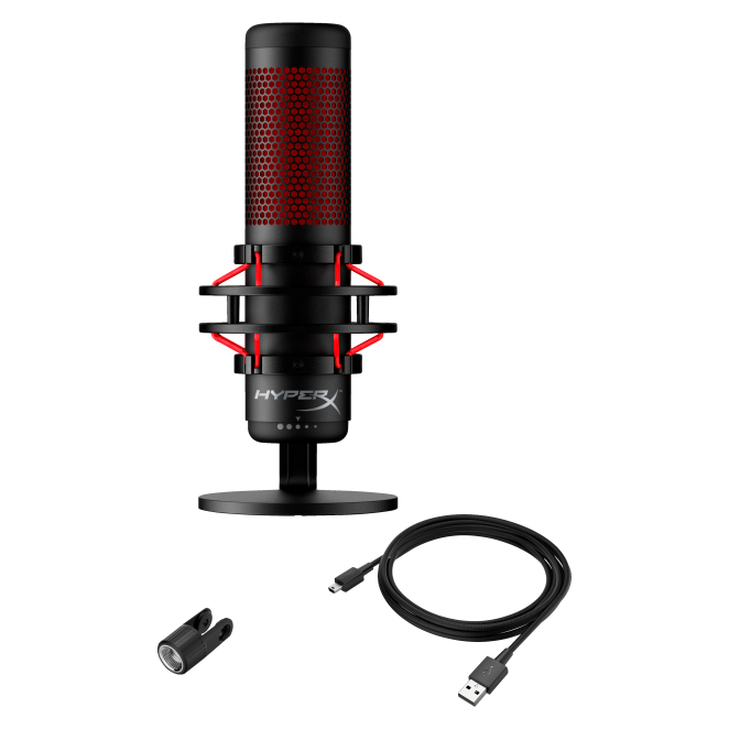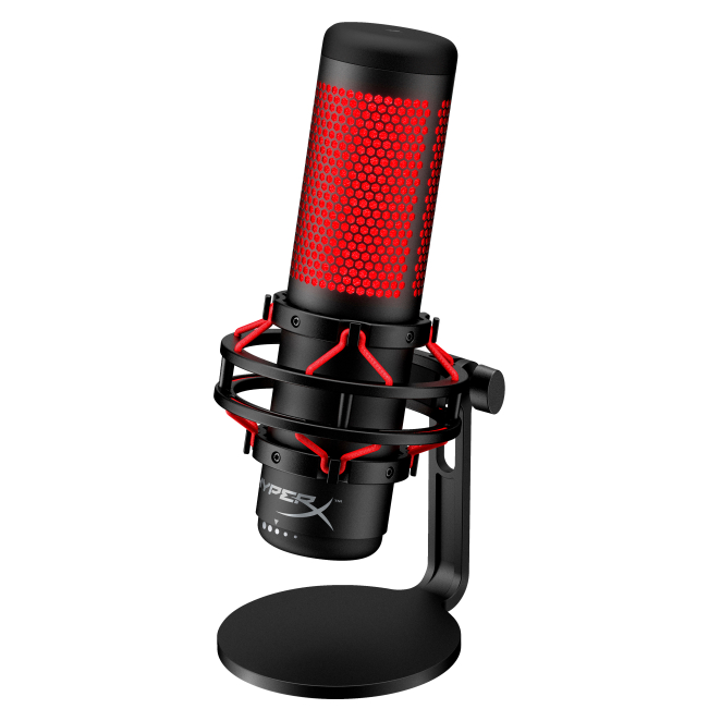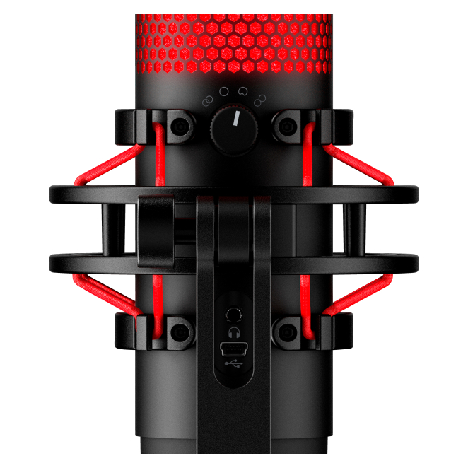 Micrófono USB HyperX QuadCast (negro-rojo) – iluminación roja