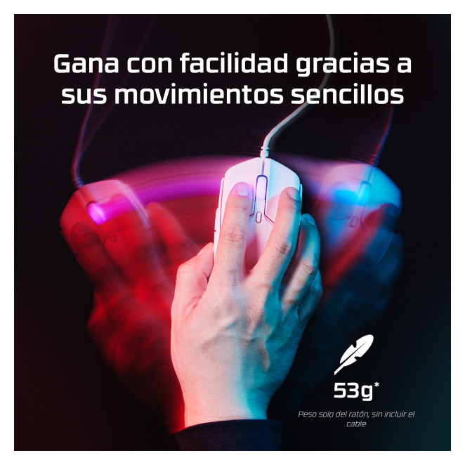 Con solo 53 gramos, este ratón permite movimientos rápidos y precisos, ideal para jugadores exigentes.