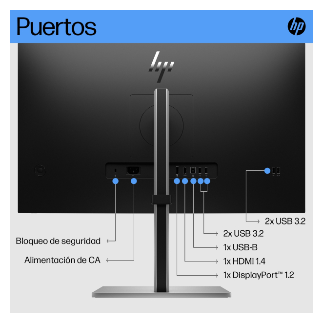 Cuenta con puertos HDMI y DisplayPort para conectar múltiples dispositivos.
