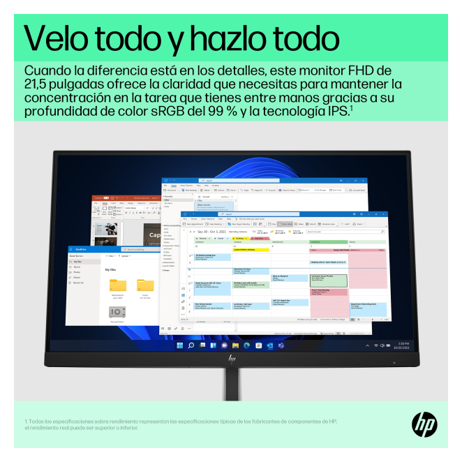El Monitor HP E-Series FHD E22 G5 combina características de última tecnología con un diseño ergonómico y versátil. Aquí algunas razones para elegir este monitor:
