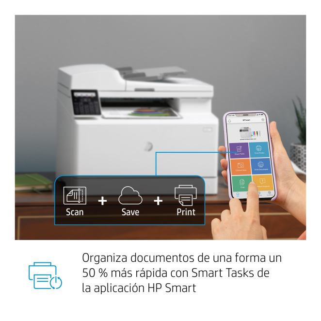 La HP Color LaserJet Pro M183fw puede imprimir hasta 16 páginas por minuto, permitiendo realizar cantidades grandes de trabajo en menos tiempo. Cuenta con conectividad WiFi, USB y Ethernet, facilitando la impresión desde cualquier dispositivo y ubicación dentro de la red. Ofrece funciones integrales como impresión, copia, escaneo y fax, todo en un solo dispositivo. La tecnología láser de esta impresora asegura impresiones nítidas y claras con una resolución de hasta 600 x 600 dpi. Funciones como Smart Tasks y la aplicación HP Smart te permiten gestionar tareas rápidamente desde tu teléfono o tablet, aumentando tu productividad.