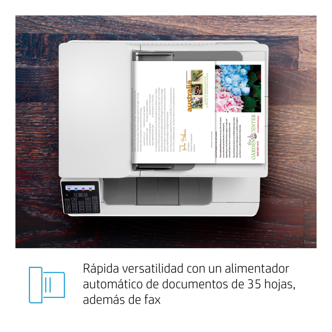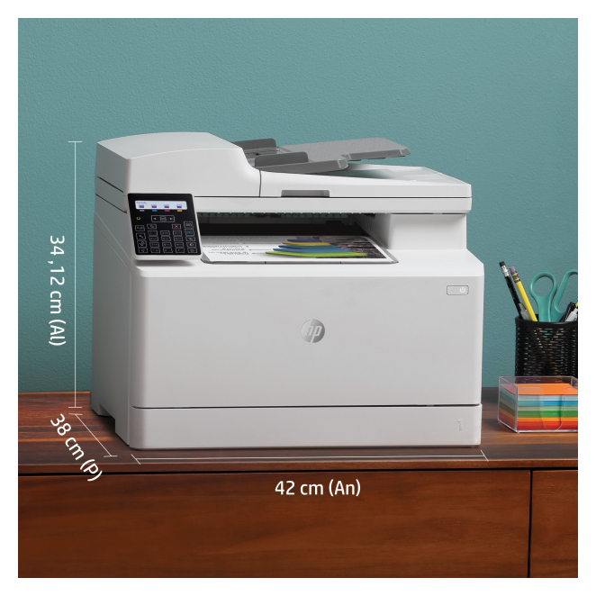 No, la impresión a doble cara en la HP Color LaserJet Pro M183fw es manual. Sí, la HP Color LaserJet Pro M183fw tiene conectividad WiFi, lo que facilita la impresión inalámbrica desde varios dispositivos. La impresora es compatible con tamaños de papel ISO A-series hasta A4 y puede manejar pesos de papel entre 60-200 gsm. Sí, viene con cartuchos de impresión iniciales con capacidad de hasta 800 páginas en negro y 700 en color. Sí, la aplicación HP Smart permite escanear y gestionar documentos directamente desde tu dispositivo móvil. Modo de impresión a doble cara Manual Color de la resolución de impresión 600 x 600 DPI Resolución de impresión en blanco y negro 600 x 600 DPI Formatos de imagen soportados BMP, JPG, PNG, RAW, TIFF Tecnología de impresión Laser Impresión Impresión a color Impresión dúplex Sí Resolución máxima 600 x 600 DPI Velocidad de impresión (negro, calidad normal, A4/US Carta) 16 ppm Tiempo de calentamiento 59 s Tiempo hasta primera página (negro, normal) 11.8 s Tiempo hasta primera página (color, normal) 13.8 s Impresión segura Sí Copia a doble cara Sí Copiando Copia a color Resolución máxima de copia 600 x 600 DPI Tamaño máximo de impresión 206 x 346 mm Resolución óptica de escáner 1200 x 1200 DPI Resolución óptica de escaneado (ADF) 300 x 300 DPI Escaneado dúplex No Escaneando Escaneo a color Tecnología de escaneado CIS Profundidad de entrada de color 24 bit Enviando por fax Envío y recepción de faxes en blanco y negro Segmento HP Pequeña y mediana empresa Posicionamiento de mercado Hogar y oficina Funciones dúplex No compatible Número de cartuchos de impresión 4 Colores de impresión Amarillo, Cian, Magenta, Negro Lenguajes de descripción de páginas PCL 5c, PCL 6, PCLm, PCLmS, PDF, PostScript 3, PWG, URF Fuentes de impresora Scalable, TrueType Formatos de imagen soportados BMP, JPG, PNG, RAW, TIFF País de origen Vietnam Cartuchos de repuesto Tipo de escaneado Escáner plano y alimentador automático de documentos (ADF, Automatic Document Feeder) Color del producto Blanco Pantalla LCD Pantalla incorporada Sí Tipo de control Botones Número de líneas en pantalla 2 líneas Certificación CISPR32:2012 & CISPR32:2015 /EN55032:2012 & EN55032:2015+AC:2016 - Class B; EN 61000-3-2:2014; EN 61000-3-3:2013; EN 55024:2010+A1:2015; FCC Title 47 CFR, Part 15 Class B/ICES-003, Issue 6 Ciclo de trabajo (máximo) 30000 páginas por mes Escanear a Fax, Software, TWAIN, WIA Controladores de escaneado TWAIN, WIA Memoria interna 256 MB Memoria interna máxima 256 MB Procesador incorporado Sí Nivel de presión acústica (impresión) 48 dB Nivel de potencia acústica (impresión) 6.2 dB Emisiones de presión acústica en modo de espera (lista) 16 dB Emisiones de potencia acústica (lista) 26 dB Número total de bandejas de entrada 1 Capacidad de entrada total 150 hojas Capacidad de salida total 100 hojas Capacidad de salida máxima 100 hojas Capacidad de entrada máxima 150 hojas Alimentador automático de documentos (ADF, Automatic document feeder) Sí Capacidad del alimentador automático de documentos 35 hojas Tipos de papel Cartulina, Etiquetas, Membrete, Papel bond, Papel fotográfico, Papel grueso, Papel normal, Papel reciclado, Papel rugoso, Papel satinado, Sobres, Transparencias ISO tamaño de serie A (A0...A9) A4, A5, A6 ISO tamaño de serie B (B0...B9) B5 ISO tamaño de serie C (C0...C9) C5 Tamaño de impresora No-ISO 16K, Carta, Ejecutivo, Legal, Oficio Tamaño de series JIS B (B0...B9) B5, B6 Tamaño de sobres 10, B5, C5, DL, Monarch Tamaño de papel fotográfico 10x15 cm Formato a medida, ancho 76-216 mm Formato a medida, largo 127-356 mm Peso del papel 60-200 g/m² Peso del papel en Alimentador de Documentos Automático 70-90 g/m² Impresión directa Sí Puerto USB Sí Tecnología de impresión móvil Apple AirPrint, HP ePrint, Mopria Print Service Wifi Sí Ethernet Sí Tecnología de cableado 10/100Base-T(X) Ethernet LAN, velocidad de transferencia de datos 10 Mbit/s, 100 Mbit/s Wi-Fi estándares Wi-Fi 4 (802.11n) Wi-Fi Direct Sí Algoritmos de seguridad soportados HTTPS, SNMPv3, SSL/TLS Encendido/Apagado automático HP Sí Requisitos de sistema recomendados HP GTIN (EAN/UPC) 193905485642, 193905485659, 193905485666, 193905485697, 193905485673, 193905485680 HP GTIN (EAN/UPC) with options (ABT) 193905485642; (ABY) 193905485659; (ACQ) 193905485666; (B13) 193905485697; (B19) 193905485673; (BAZ) 193905485680 Consumo energético (en suspensión) 0.7 W Consumo de energía (apagado) 0.05 W Consumo de energía (ahorro) 0.05 W Enery Star Consumo Electrico Típico (TEC) 0.203 kWh/semana Frecuencia de entrada AC 50/60 Hz Voltaje de entrada AC 110 - 240 V Sistema operativo Windows soportado Windows 10, Windows 11, Windows 7, Windows 8, Windows 8.1, Windows Vista Sistema operativo MAC soportado Mac OS X 10.12 Sierra, Mac OS X 10.13 High Sierra, Mac OS X 10.14 Mojave, Mac OS X 10.15 Catalina Otros sistemas operativos soportados Linux Cumplimiento de sostenibilidad Sí Certificados de sostenibilidad Blue Angel, ENERGY STAR, EPEAT Silver Materiales y tecnologías sostenibles Sin mercurio No contiene Mercurio Total de huella de carbono (kg of CO2e) 210 Emisiones de carbono, fabricación (kg de CO2e) 160 Emisiones de carbono, logística (kg de CO2e) 6 Emisiones de carbono, fin de vida útil (kg de CO2e) 26 Emisiones de carbono, sin fase de uso (kg de CO2e) 13 Intervalo de temperatura operativa 10-32.5 °C Intervalo de temperatura de almacenaje -20-40 °C Intervalo de humedad relativa para funcionamiento 10-80 % Intervalo de humedad para funcionamiento recomendado 30-70 % Ancho 420 mm Profundidad 380 mm Altura 341.2 mm Peso 16300 g Ancho del paquete 497 mm Profundidad del paquete 398 mm Altura del paquete 466 mm Peso del paquete 19500 g Cables incluidos Corriente alterna, Teléfono, USB Cartucho (s) incluido Sí Capacidad de cartucho incluido (negro) 800 páginas Capacidad de cartucho incluido (CMY) 700 páginas