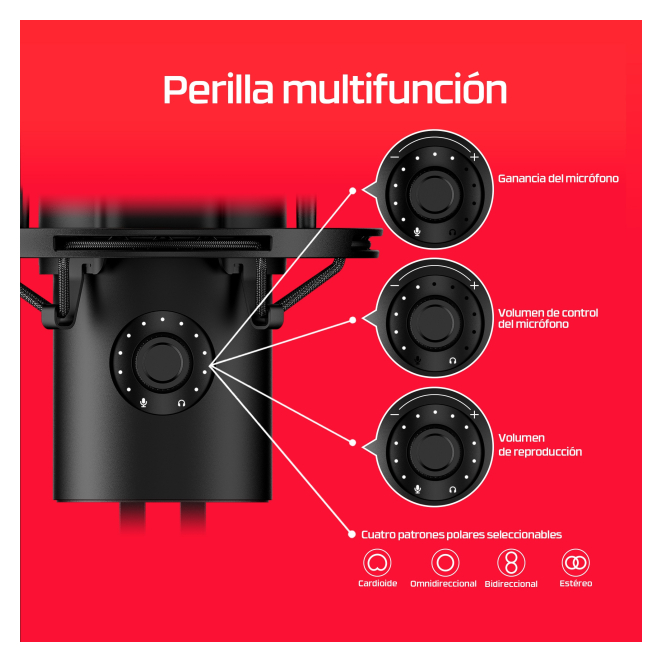 El HyperX QuadCast 2 ofrece una pluralidad de ventajas que lo convierten en una elección ideal para cualquier creador de contenido. Su construcción alámbrica garantiza una conexión estable y confiable. Las múltiples opciones de patrón de dirección permiten adaptarse a diferentes escenarios de grabación, desde entrevistas hasta streaming en vivo. Este micrófono viene con un soporte antivibración que minimiza el ruido de fondo, asegurando que solo tu voz sea capturada con claridad. La iluminación LED no solo es estética, sino que también ayuda a monitorear el estado del micrófono.
