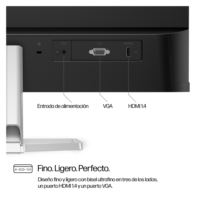 El monitor incluye un puerto HDMI 1.4 y un puerto VGA (D-Sub).