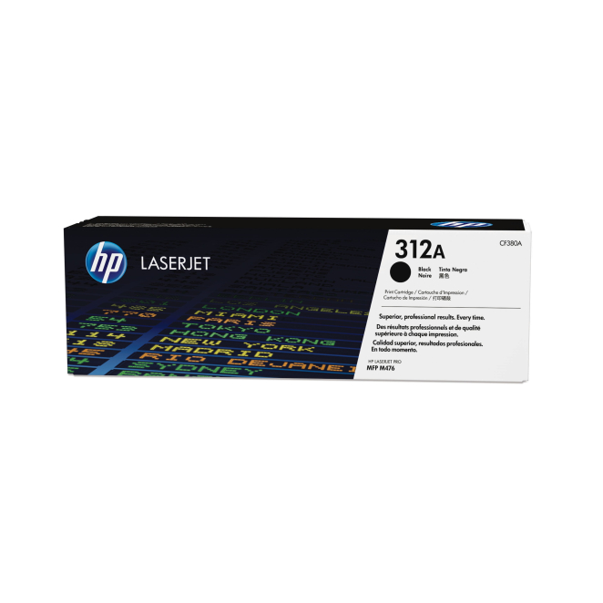 Cartucho de tóner HP 312A en color negro, compatible con impresoras LaserJet. SKU CF380A