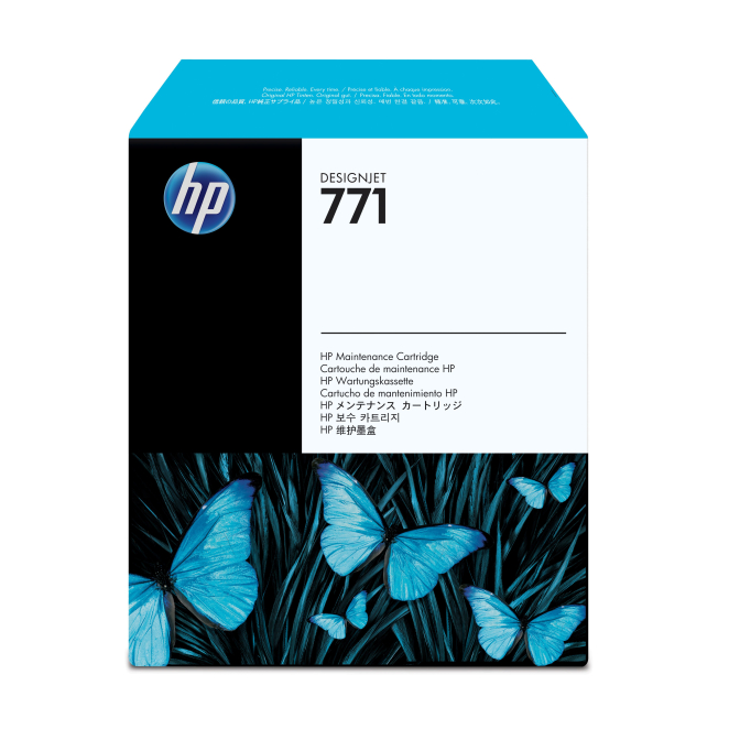 Imagen del cartucho de mantenimiento HP DesignJet 771, número de modelo CH644A, ideal para impresiones de gran volumen y alta calidad.