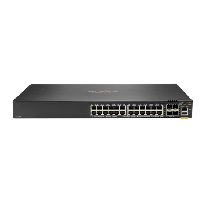 HPE Aruba Networking CX 6200F 24G Class-4 PoE 4SFP+ 370W Gestionado L3 Gigabit Ethernet (10/100/1000) Energía sobre Ethernet (PoE) 1U, SKU JL725B#ABB