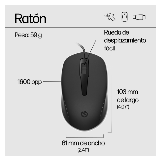 HP Teclado y Ratón con Cable 150 modelo 240J7AA#ABE, conjunto ergonómico y eficiente para ordenador