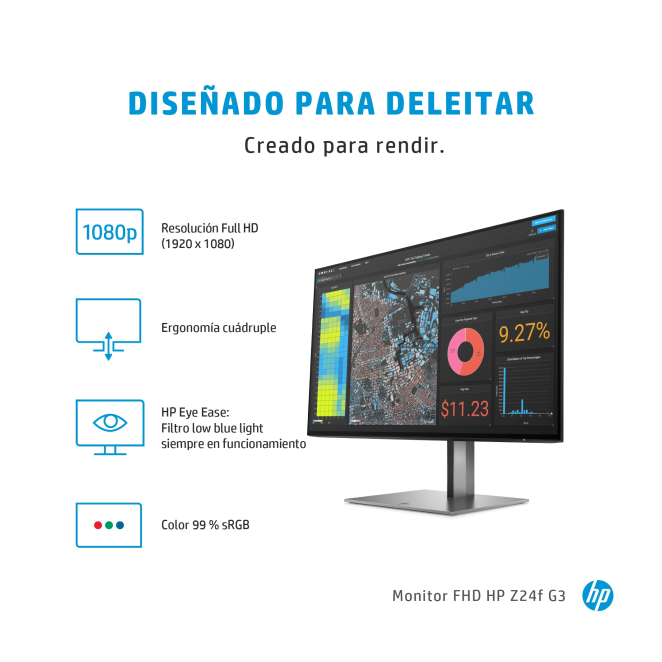 El monitor HP Z24f G3 es la elección perfecta para quienes buscan una pantalla de alta calidad que combine rendimiento y diseño.
