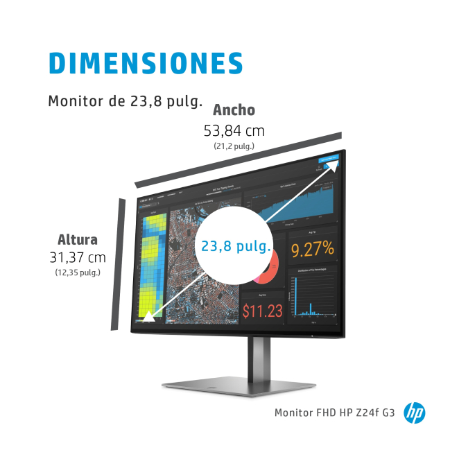 El monitor HP Z24f G3 es más que una simple pantalla; es una ventana a tu productividad y creatividad. Con una diagonal de 23.8 pulgadas y una resolución Full HD de 1920 x 1080 píxeles, esta pantalla para PC proporciona una claridad excepcional y colores precisos que harán que tus proyectos brillen. Fabricado con auténtico aluminio, el diseño premium de este monitor no solo luce bien, sino que también mejora la durabilidad y la calidad visual. Ideal para profesionales que buscan una pantalla confiable y de alta resolución para sus tareas diarias.