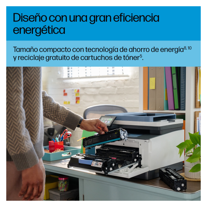 Aquí encontrarás respuestas a algunas de las preguntas más comunes sobre la HP Color LaserJet Pro Impresora multifunción 3302sdw. Sí, la HP LaserJet Pro 3302sdw cuenta con impresión a doble cara automática, lo que permite ahorrar papel y mejorar la eficiencia. La HP Color LaserJet Pro 3302sdw tiene una resolución máxima de 600 x 600 para impresiones tanto en color como en blanco y negro. Sí, la HP Color LaserJet Pro 3302sdw incluye conectividad Wi-Fi además de Ethernet, facilitando su integración en distintos entornos de red. La HP Color LaserJet Pro 3302sdw utiliza cuatro cartuchos de impresión, uno para cada color (Cian, Magenta, Amarillo y Negro). Sí, la HP LaserJet Pro 3302sdw es adecuada para oficinas con un ciclo de trabajo mensual de hasta 40,000 páginas, siendo ideal para entornos con altos volúmenes de trabajo. Modo de impresión a doble cara Auto Color de la resolución de impresión 600 x 600 DPI Resolución de impresión en blanco y negro 600 x 600 DPI Formatos de imagen soportados JPG, TIFF Tecnología de impresión Laser Impresión Impresión a color Impresión dúplex Sí Resolución máxima 600 x 600 DPI Velocidad de impresión (negro, calidad normal, A4/US Carta) 25 ppm Tiempo de calentamiento 55 s Tiempo hasta primera página (negro, normal) 10.9 s Copia a doble cara Sí Copiando Copia a color Resolución máxima de copia 600 x 600 DPI Tamaño máximo de impresión 216 x 355.6 mm Resolución óptica de escáner 1200 x 1200 DPI Resolución óptica de escaneado (ADF) 300 x 300 DPI Escaneado dúplex No Escaneando Escaneo a color Tecnología de escaneado CIS Profundidad de entrada de color 24 bit Segmento HP Pequeña y mediana empresa Posicionamiento de mercado Negocios Funciones dúplex Copiar, Imprimir Número de cartuchos de impresión 4 Colores de impresión Amarillo, Cian, Magenta, Negro Lenguajes de descripción de páginas JPEG, PCL 5, PCL 6, PCLm, PDF, PostScript, PWG, URF Fuentes de impresora Scalable, TrueType Formatos de imagen soportados JPG, TIFF País de origen Vietnam Cartuchos de repuesto Tipo de escaneado Escáner plano y alimentador automático de documentos (ADF, Automatic Document Feeder) Color del producto Azul, Gris Pantalla TFT Pantalla incorporada Sí Tipo de control Tocar Pantalla a color Sí Diagonal de la pantalla 4.3 " Certificación Ciclo de trabajo (máximo) 40000 páginas por mes Escanear a Correo electrónico, Network folder, PC, USB Controladores de escaneado TWAIN Memoria interna 512 MB Memoria interna máxima 512 MB Procesador incorporado Sí Nivel de presión acústica (impresión) 51 dB Nivel de potencia acústica (impresión) 6.3 dB Emisiones de presión acústica en modo de espera (lista) 16 dB Emisiones de potencia acústica (lista) 23 dB Número total de bandejas de entrada 2 Capacidad de entrada total 251 hojas Capacidad de entrada de la bandeja de papel 1 250 hojas Capacidad de salida total 100 hojas Capacidad de entrada de la bandeja de papel 2 250 hojas Capacidad de salida máxima 100 hojas Capacidad de entrada máxima 251 hojas Bandeja multifunción Sí Alimentador automático de documentos (ADF, Automatic document feeder) Sí Capacidad del alimentador automático de documentos 50 hojas Tipos de papel Cartulina, Etiquetas, Membrete, Papel bond, Papel grueso, Papel normal, Papel reciclado, Papel rugoso, Papel satinado, Sobres, Transparencias ISO tamaño de serie A (A0...A9) A4, A5, A6 ISO tamaño de serie B (B0...B9) B5, B6 ISO tamaño de serie C (C0...C9) C5 Tamaño de impresora No-ISO 16K, Oficio Tamaño de series JIS B (B0...B9) B5, B6 Tamaño de sobres B5, C5, DL Impresión directa Sí Puerto USB Sí Tecnología de impresión móvil Apple AirPrint, Mopria Print Service Wifi Sí Ethernet Sí Tecnología de cableado 10/100Base-T(X) Ethernet LAN, velocidad de transferencia de datos 10 Mbit/s, 100 Mbit/s Wi-Fi estándares Wi-Fi 5 (802.11ac) Wi-Fi Direct Sí Encendido/Apagado automático HP Sí Requisitos de sistema recomendados Microsoft® Windows® 11, 10: 32-bit or 64-bit, 2 GB available hard disk space, Internet connection HP GTIN (EAN/UPC) 196786388446, 196786388477, 196786388484, 196786388491 HP GTIN (EAN/UPC) with options (ABT) 196786388446; (ABY) 196786388477; (B19) 196786388484; (BAZ) 196786388491 Consumo energético (en suspensión) 0.95 W Consumo de energía (apagado) 0.05 W Enery Star Consumo Electrico Típico (TEC) 0.338 kWh/semana Sistema operativo Windows soportado Windows 10, Windows 11 Sistema operativo MAC soportado Mac OS X 12.0 Monterey, Mac OS X 13.0 Ventura Otros sistemas operativos soportados Android, iOS, Linux Cumplimiento de sostenibilidad Sí Certificados de sostenibilidad Blue Angel, Post-Consumer Recycled Plastic Total de huella de carbono (kg of CO2e) 260 Emisiones de carbono, fabricación (kg de CO2e) 177 Emisiones de carbono, logística (kg de CO2e) 20 Emisiones de carbono, fin de vida útil (kg de CO2e) 33 Emisiones de carbono, sin fase de uso (kg de CO2e) 25 Intervalo de temperatura operativa 15-30 °C Intervalo de temperatura de almacenaje -20-60 °C Intervalo de humedad relativa para funcionamiento 10-80 % Intervalo de humedad para funcionamiento recomendado 30-70 % Ancho 418 mm Profundidad 419.12 mm Altura 341.32 mm Peso 17100 g Ancho del paquete 497 mm Profundidad del paquete 398 mm Altura del paquete 532 mm Peso del paquete 20600 g Cables incluidos Corriente alterna Cartucho (s) incluido Sí Capacidad de cartucho incluido (negro) 600 páginas Capacidad de cartucho incluido (CMY) 500 páginas Manual de usuario Sí