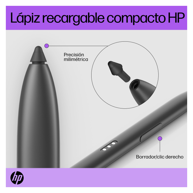 El HP Lápiz recargable Slim ofrece una experiencia de uso cómoda y eficiente. Con un peso ligero y diseño compacto, es fácil de manejar durante largos periodos. Su excelente precisión y respuesta rápida aseguran que cada trazo se refleje instantáneamente en tu pantalla, lo que mejora significativamente la productividad y creatividad. Su integración con el puerto pogo permite una carga sin complicaciones y lo mantiene listo para usar en cualquier momento.