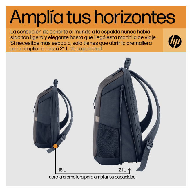 La HP Mochila para portátil Travel de 15,6 pulgadas y 18 litros, color gris, no solo es elegante sino también altamente funcional. Su diseño espacioso permite almacenar todos tus dispositivos y accesorios de forma segura y organizada. Gracias a su material de poliéster, esta mochila portátil HP es muy resistente al desgaste diario. Además, su capacidad expandible de hasta 21 litros la hace ideal para viajes largos o cortos. Los múltiples compartimientos, tanto grandes como pequeños, garantizan que cada objeto tenga su lugar específico, facilitando el acceso rápido y eficiente.