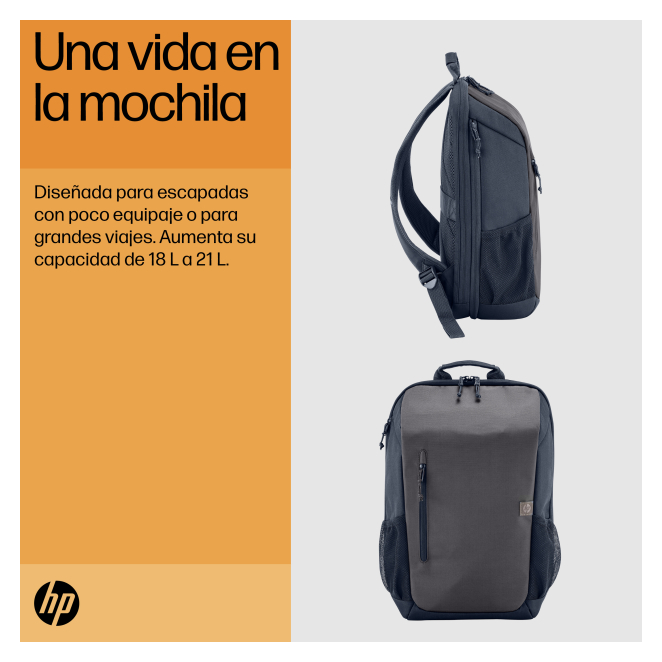 ¿Cuál es la capacidad de la HP Mochila para portátil Travel de 15,6 pulgadas y 18 litros, color gris?