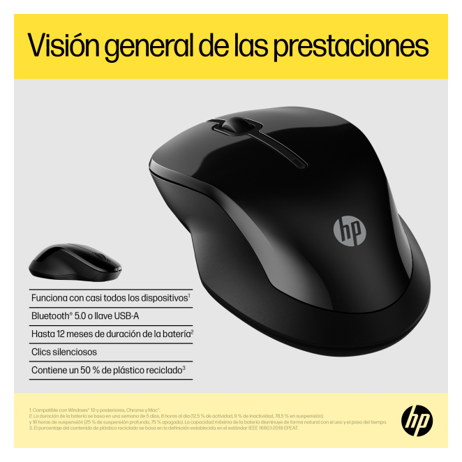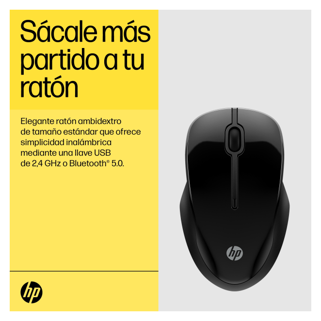 El HP Ratón dual 250 está diseñado para funcionar en casi cualquier superficie, proporcionando una excelente precisión y facilidad de uso.