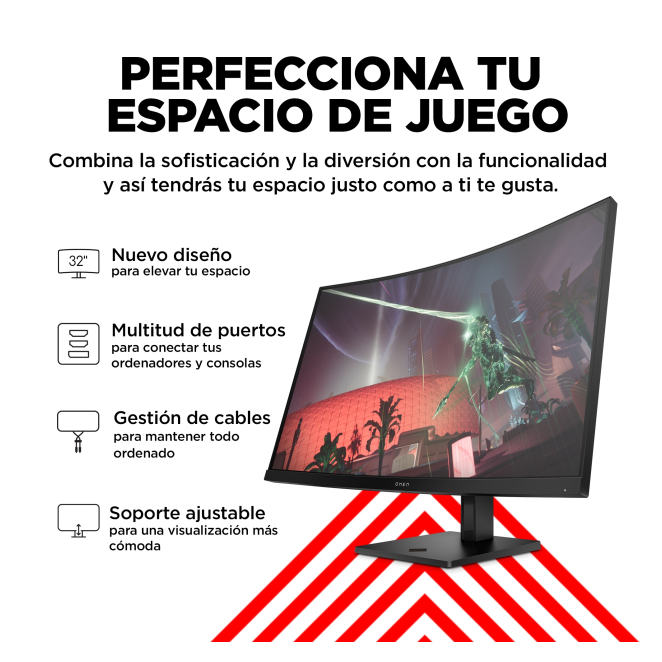 El OMEN by HP Monitor gaming curvo de 31,5 pulgadas, QHD y 165 Hz – OMEN 32c es una inversión inteligente para cualquier jugador serio. Sus 165 Hz garantizan una fluidez inigualable en los juegos de alto rendimiento. Disfruta de imágenes nítidas y detalles impresionantes con su resolución de 2560 x 1440. Minimiza el desgarro de la pantalla y los parpadeos para una experiencia de juego más suave. Ajusta el monitor a tu preferencia con sus funciones de inclinación y altura regulable. La curva de 1500R te envuelve en el juego, proporcionándote una experiencia visual envolvente.
