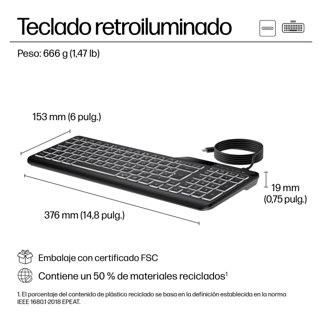 El HP Teclado con cable retroiluminado multidispositivo 405 ofrece numerosas ventajas que lo convierten en una opción superior para cualquier entorno de trabajo. Con sus teclas retroiluminadas, es posible trabajar en cualquier condición de iluminación. Incluye 12 teclas programables para personalizar su experiencia según sus necesidades, ofreciendo acceso rápido a aplicaciones y comandos. La conectividad USB asegura una perfecta integración con una variedad de dispositivos. También es importante destacar que este teclado se puede desinfectar, lo que lo hace ideal para ambientes higiénicos.