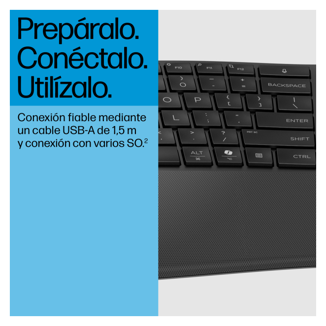 Teclado HP 485 Comfort con conexión por cable, diseño ergonómico y suave al tacto para una experiencia de escritura cómoda, SKU 8T6M2AA#ABE
