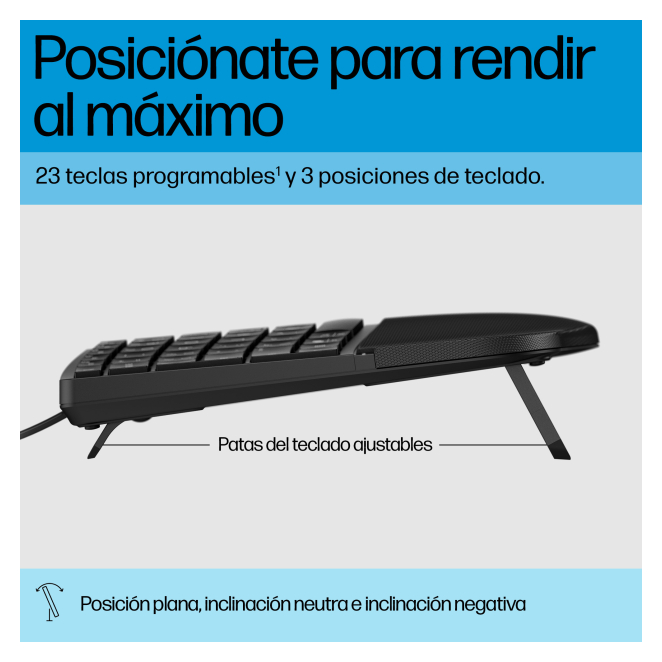 El teclado HP 485 Comfort Wired Keyboard ofrece una experiencia de usuario superior gracias a su usabilidad y comodidad. Su diseño completo y el descanso para muñecas aseguran una postura ergonómica, evitando el cansancio y malestar durante el uso prolongado. La respuesta rápida de sus teclas permite una escritura fluida y precisa, mientras que la conexión USB asegura una instalación sencilla sin necesidad de software adicional. El ángulo ajustable del teclado permite personalizar la posición según las preferencias individuales.