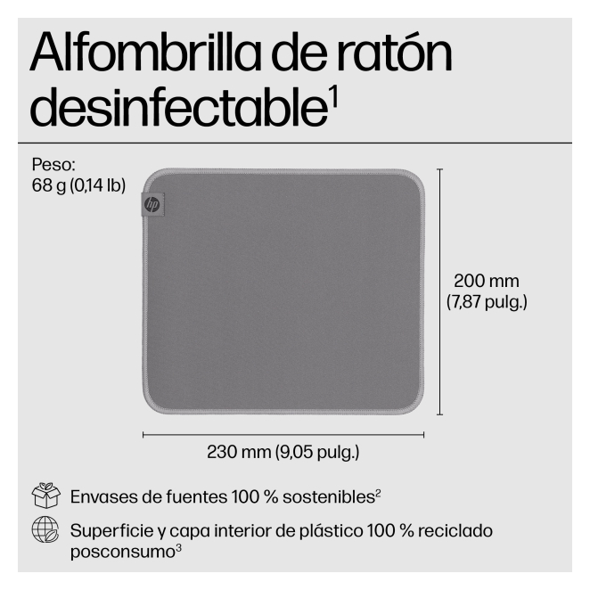 HP Alfombrilla de Ratón Sanitizable, Modelo 100 con resistencia a manchas y limpieza fácil. SKU 8X594AA