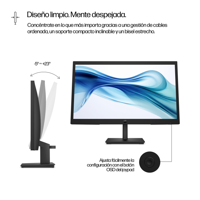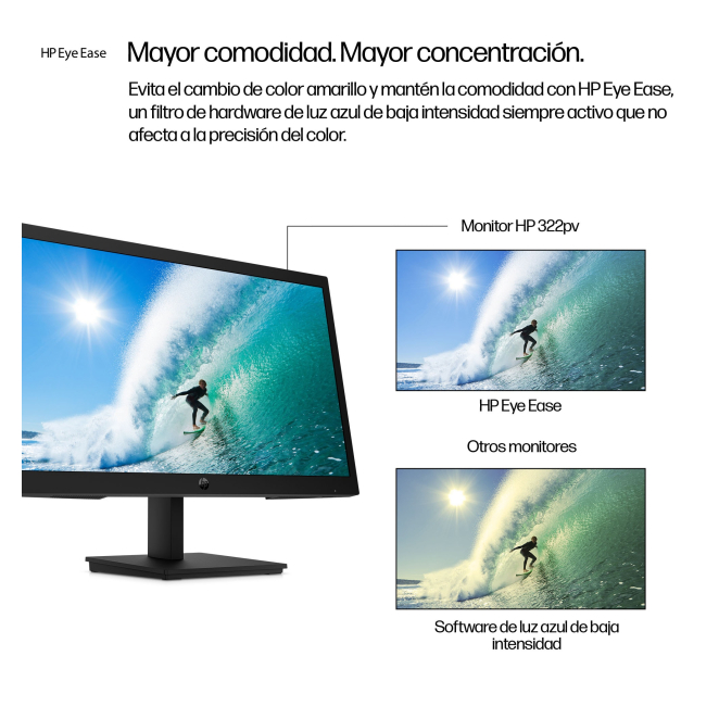 El Monitor HP Series 3 Pro FHD de 21,45 pulgadas ofrece múltiples beneficios para mejorar tu productividad y comodidad. Su alta resolución Full HD garantiza una extraordinaria claridad y detalle visual, esencial para tareas de oficina y trabajos gráficos. Su ángulo de visión de 178 grados, tanto horizontal como vertical, permite una visualización perfecta desde diversos ángulos, ideal para presentaciones y colaboraciones. La tecnología Low Blue Light y Flicker Free reduce el esfuerzo ocular, permitiendo trabajar durante más tiempo sin fatiga. Este monitor también incorpora una ranura para cable de seguridad y montaje VESA, lo que asegura una instalación segura y flexible.