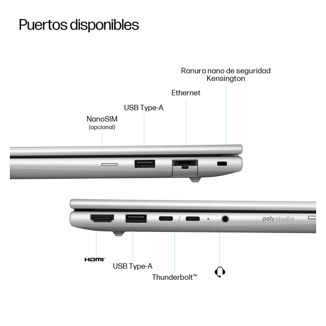 Almacenamiento y memoria: Con 16 GB de RAM DDR5 y un SSD de 512 GB, el HP EliteBook 6 G1i asegura un rendimiento veloz y un amplio espacio de almacenamiento.