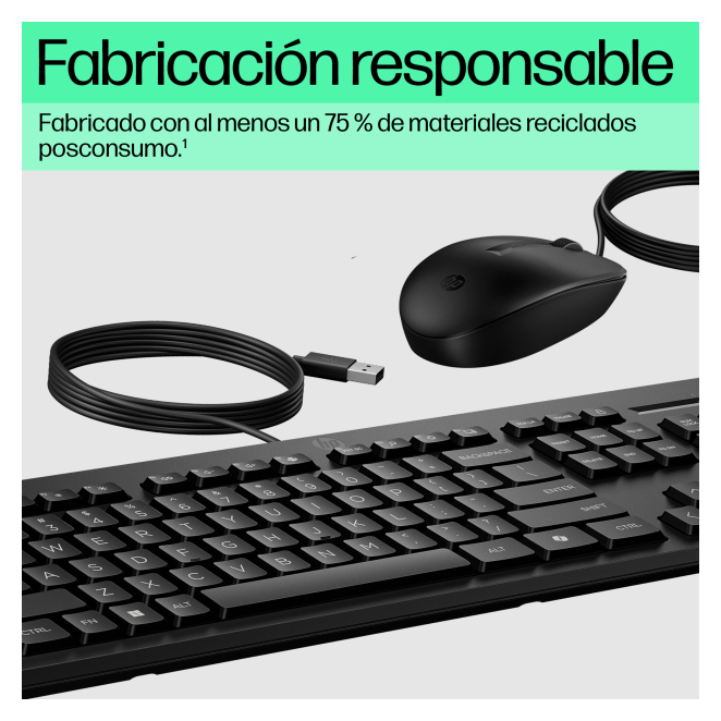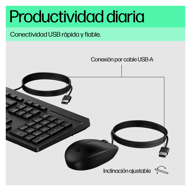 Combo de teclado y ratón con cable HP modelo 225, color negro, SKU AX2Y7AA#ABE, diseño ergonómico y conexión USB Este producto se puede comprar bajo demanda. Financiado desde: 1,38 € /mes Solicita información en caso de necesitar envío urgente. Métodos de pago: HP Combo de teclado y ratón con cable 225 El HP Combo de teclado y ratón con cable 225 es la solución perfecta para quienes buscan mejorar su productividad diaria. Este kit de teclado y ratón diseñado por HP Inc. es ideal para oficinas y entornos profesionales que requieren un alto rendimiento y fiabilidad. Con un teclado de formato completo y teclado numérico incluido, así como un ratón óptico con una resolución de movimiento de 1200 DPI, este combo asegura precisión y comodidad en el uso prolongado. Además, su tecnología de conectividad alámbrica y la interfaz USB garantizan una instalación fácil y rápida. Diseñado en un elegante color negro monocromo, el HP Combo de teclado y ratón con cable 225 es una excelente adición a cualquier estación de trabajo.
