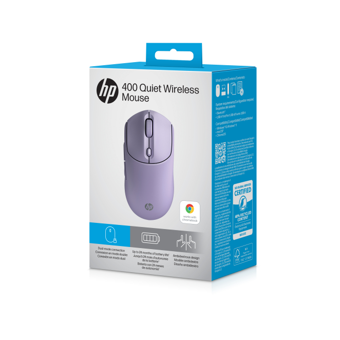 El HP Ratón inalámbrico silencioso 400 es el accesorio perfecto para quienes buscan combinar funcionalidad y estilo. Con un diseño moderno y ergonómico, este ratón ofrece una experiencia de uso cómoda y silenciosa ideal para el hogar o la oficina. Fabricado con materiales de alta calidad, el HP Ratón inalámbrico silencioso 400 cuenta con una batería de larga duración de hasta 24 meses y conectividad dual por RF Wireless y Bluetooth, asegurando una conexión estable y sin interrupciones. Disponible en un elegante color púrpura, este ratón es la herramienta perfecta para mejorar tu productividad y disfrute diario.