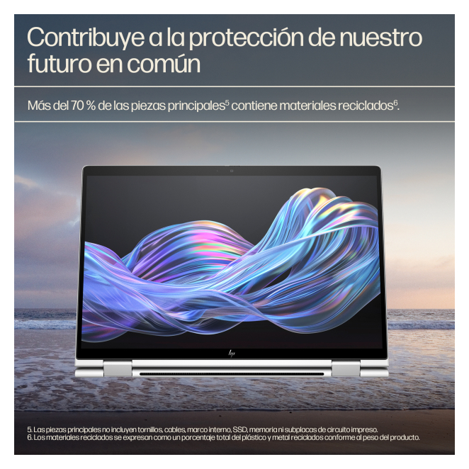 Sí, el HP EliteBook X Flip G1i tiene una duración de batería optimizada para garantizar que puedas trabajar durante largas horas sin necesidad de carga constante. Sí, su pantalla táctil 2.5K y el procesador Intel Core Ultra 7 permiten realizar tareas de diseño gráfico con una gran precisión y rendimiento. Absolutamente, con su cámara frontal de 5MP y micrófonos integrados, es perfecto para videoconferencias de alta calidad. Este dispositivo incluye seguridad Wolf Pro de HP, asegurando protección avanzada contra amenazas cibernéticas. Sí, este dispositivo cuenta con un controlador de WWAN que es compatible con redes 5G para una conectividad súper rápida. Nombre del color Plata glaciar Tipo de producto Híbrido (2-en-1) Color del producto Plata Factor de forma Convertible (Carpeta) Posicionamiento de mercado Premium Año de introducción 2025 Nombre de marca original HP Diagonal de la pantalla 14 " Resolución de la pantalla 2560 x 1600 Pixeles Pantalla táctil Sí Tipo HD 2.5K Tipo de pantalla IPS Retroiluminación LED Sí Brillo de pantalla 400 cd / m² Espacio de color RGB DCI-P3 Gama de colores 100 % Máxima velocidad de actualización 120 Hz Fabricante de procesador Intel Familia de procesador Intel Core Ultra 7 Generación del procesador Intel Core Ultra (Series 2) Modelo del procesador 258V Número de núcleos de procesador 8 Número de hilos de ejecución 8 Núcleos de rendimiento 4 Núcleos de eficiencia de baja potencia 4 Frecuencia del procesador turbo 4.8 GHz Frecuencia turbo máxima del núcleo de rendimiento 4.8 GHz Frecuencia turbo máxima del núcleo de eficiencia de baja potencia 3.7 GHz Frecuencia base de núcleo de rendimiento 2.2 GHz Frecuencia base del núcleo de eficiencia de baja potencia 2200 MHz Caché del procesador 12 MB Tipo de cache en procesador L3 Potencia base del procesador 17 W Potencia turbo máxima 37 W Unidad de procesamiento neuronal (NPU) Intel AI Boost Rendimiento total del procesador de hasta 115 TOPs Rendimiento del núcleo NPU de hasta 47 TOPs Soporte de dispersión Sí Soporte de efectos de Windows Studio Sí Entornos de trabajo de software de IA compatibles con el núcleo NPU DirectML, ONNX RT, OpenVINO, WebNN, Windows ML Memoria interna 32 GB Memoria interna máxima 32 GB Tipo de memoria interna LPDDR5x-SDRAM Velocidad de memoria del reloj 8533 MHz Forma de factor de memoria Incorporado Disposición de la memoria No disponible GB Capacidad total de almacenaje 512 GB Unidad de almacenamiento SSD Capacidad total de SSD 512 GB SDD, capacidad 512 GB Número de unidades SSD instalados 1 Interfaces del SDD PCI Express NVMe Sí Tipo de unidad óptica No Modelo de adaptador de gráficos discretos No disponible Adaptador gráfico incorporado Sí Fabricante de GPU (unidad de procesamiento gráfico) integrada Intel Adaptador de gráficos discreto No Familia de adaptador gráfico incorporado Intel Arc Graphics Modelo de adaptador gráfico incorporado Intel Arc Graphics 140V Micrófono incorporado Sí Número de altavoces incorporados 4 número de micrófonos 2 Cámara frontal Sí Resolución de la cámara frontal (numérica) 5 MP Cámara infrarroja (IR) Sí Estándar Wi-Fi Wi-Fi 7 (802.11be) Wi-Fi estándares Wi-Fi 7 (802.11be) Conexión a red móvil Sí Modelo de controlador WLAN Intel Wi-Fi 7 BE201 Fabricante del controlador WLAN Intel Tipo de antena 2x2 Bluetooth Sí Versión de Bluetooth 5.4 Comunicación de Campo Cercano (NFC) Sí Cantidad de puertos tipo C USB 3.2 Gen 2 (3.1 Gen 2) 1 Cantidad de puertos tipo A USB 3.2 Gen 1 (3.1 Gen 1) 1 Número de puertos HDMI 1 Versión HDMI 2.1 Número de puertos Thunderbolt 4 2 Combo de salida de auriculares / micrófono del puerto Sí USB Type-C DisplayPort Alternate Mode Sí USB Sleep-and-Charge (carga y reposo) Sí Puertos USB Sleep-and-Charge (carga y reposo) 2 Sensor magnetómetro Sí Teclado numérico No Retroiluminación de teclado Sí Teclado resistente a líquidos Sí Nombre del color del teclado Gris Sistema operativo instalado Windows 11 Pro Tipo de altavoz HP Altavoces cuádruples HP Adaptador inteligente AC HP Sí Cámara frontal HP HP Webcam 5MP Segmento HP Negocios General Product Safety Regulation (GPSR) URL https://support.hp.com/us-en/document/ish_6126692-6126777-16?openCLC=true Tecnología de batería Polímero de litio Número de celdas de batería 6 Capacidad de batería 68 Wh Carga rápida Sí Potencia de adaptador AC 65 W Frecuencia de adaptador AC 50 - 60 Hz Voltaje de entrada de adaptador AC 100 - 240 V Suministro de potencia USB Sí Módulo de plataforma confiable (TPM) Sí Lector de huella digital Sí Versión de Trusted Platform Module (TPM) 2.0 Protección mediante contraseña Sí Protección con contraseña BIOS, Encendido, Usuario Certificados de conformidad CE, RoHS Cumplimiento de sostenibilidad Sí Certificados de sostenibilidad ENERGY STAR, TCO Materiales y tecnologías sostenibles Ancho 313.9 mm Profundidad 219.9 mm Altura (frente) 10.5 mm Altura (posterior) 14.7 mm Peso 1400 g Total de huella de carbono (kg of CO2e) 160 Emisiones de carbono, fabricación (kg de CO2e) 146 Emisiones de carbono, logística (kg de CO2e) 5 Emisiones de carbono, sin fase de uso (kg de CO2e) 8