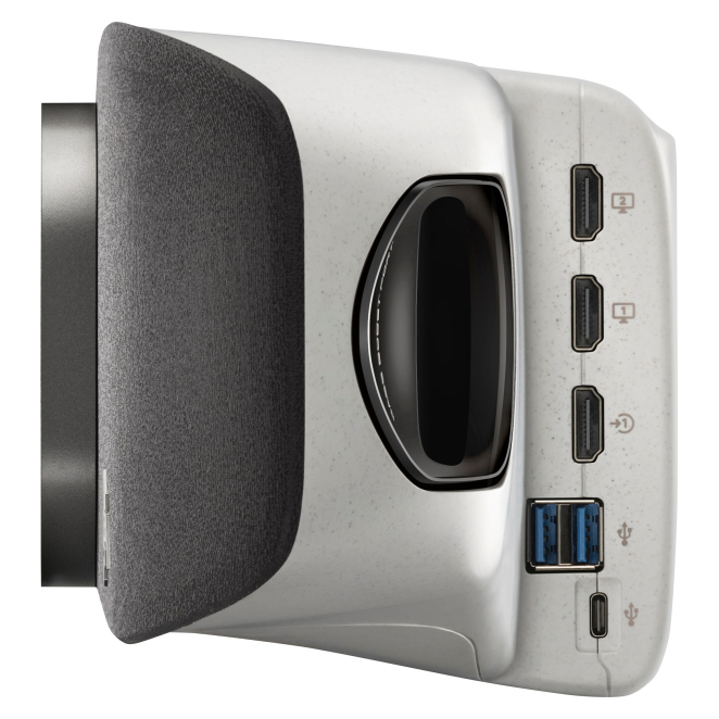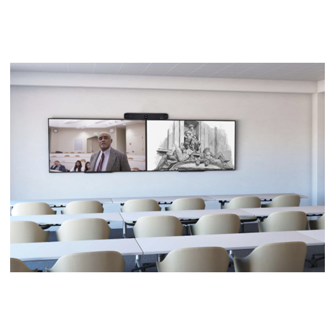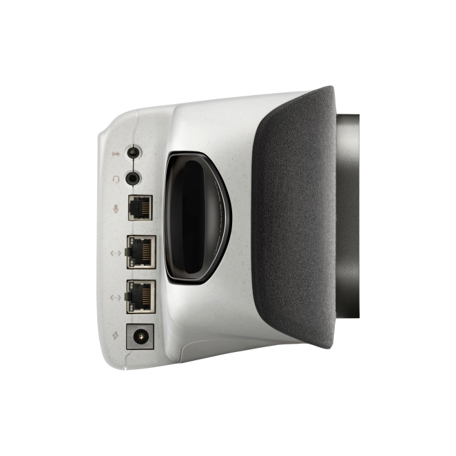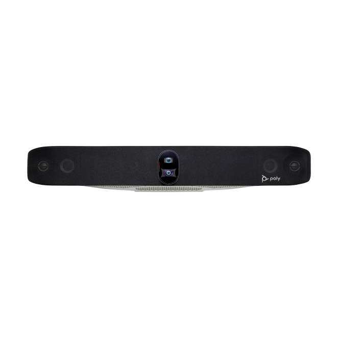 El Poly Studio X70 cuenta con dos micrófonos incorporados y altavoces integrados para proporcionar un audio claro y sin interferencias.