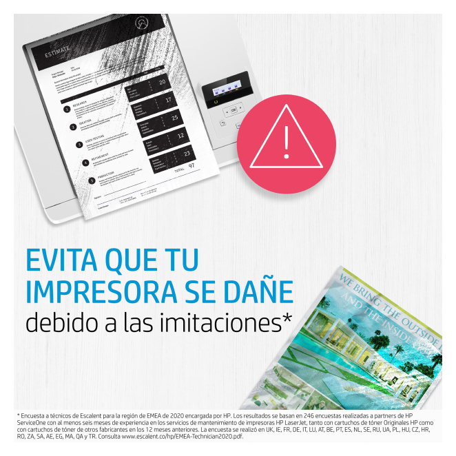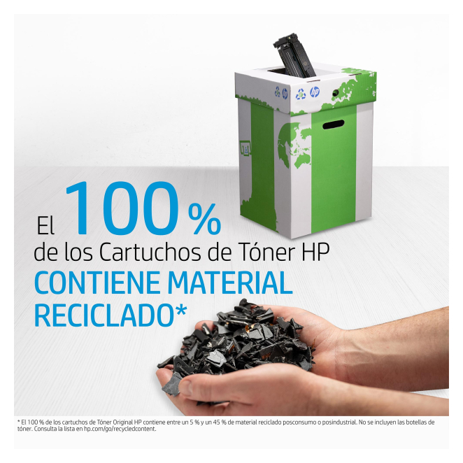 Imagen del cartucho de tóner HP original LaserJet 124A en color negro, SKU Q6000A, ideal para impresión de alta calidad y durabilidad. Stock disponible en nuestros almacenes Financiado desde: 7,65 € /mes Solicita información en caso de necesitar envío urgente. Métodos de pago: HP Cartucho de tóner original LaserJet 124A negro El HP Cartucho de tóner original LaserJet 124A negro es la mejor opción para quienes buscan obtener la máxima calidad y fiabilidad en sus impresiones. Diseñado específicamente para impresoras HP LaserJet modelos 1600, 2600, 2605, CM1015 y CM1017, este cartucho ofrece un rendimiento de impresión de hasta 2500 páginas, ideal para empresas y entornos de trabajo que requieren impresiones frecuentes y de alta calidad. Con el HP Cartucho de tóner original LaserJet 124A negro, puede estar seguro de que está utilizando un producto original de HP, que garantiza resultados brillantes y de calidad fotográfica en cada hoja. El HP Cartucho de tóner original LaserJet 124A negro ofrece numerosas ventajas para cualquier entorno de trabajo. En primer lugar, su compatibilidad con varias impresoras HP LaserJet asegura una instalación sencilla y un rendimiento óptimo. Además, este cartucho está hecho con material reciclado en un 20%, lo que lo convierte en una opción respetuosa con el medio ambiente. Otro punto destacado es su rendimiento de 2500 páginas, lo que significa que puede manejar grandes volúmenes de impresión sin necesidad de sustituciones frecuentes. El HP Cartucho de tóner original LaserJet 124A negro es ideal para una amplia variedad de usuarios. Empresas que necesitan realizar impresiones de alta calidad de manera constante, oficinas con un gran flujo de documentos y hogares que demandan impresiones nítidas y duraderas encontrarán en este cartucho una solución efectiva. Además, su diseño original y autenticidad aseguran un rendimiento sin problemas, lo que lo hace perfecto para aquellos que dependen de impresoras HP LaserJet para sus tareas diarias. El HP Cartucho de tóner original LaserJet 124A negro está diseñado para ofrecer una experiencia de usuario sobresaliente. Su instalación es rápida y sencilla, garantizando que incluso los usuarios menos técnicos puedan empezar a imprimir de inmediato. Además, la calidad de impresión es consistentemente alta, proporcionando documentos con texto claro e imágenes brillantes. La fiabilidad de este cartucho reduce el tiempo de inactividad y el costo asociado a reemplazos frecuentes, haciendo que su uso sea extremadamente práctico y eficiente. El HP Cartucho de tóner original LaserJet 124A negro ofrece múltiples razones para ser la elección preferida: Con el tóner HP ColorSphere, obtendrá resultados brillantes y de calidad fotográfica. Un cartucho original HP asegura un desempeño constante sin fallos. Hecho con un 20% de material reciclado, contribuye a la sostenibilidad. Diseñado para funcionar perfectamente con impresoras HP LaserJet. Si tienes alguna duda sobre el HP Cartucho de tóner original LaserJet 124A negro, aquí resolvemos las preguntas más comunes: No, el HP Cartucho de tóner original LaserJet 124A negro es compatible específicamente con los modelos HP LaserJet 1600, 2600, 2605, CM1015 y CM1017. El HP Cartucho de tóner original LaserJet 124A negro tiene un rendimiento de impresión aproximado de 2500 páginas. Sí, este cartucho está fabricado con un 20% de material reciclado. Los cartuchos originales HP, como el HP Cartucho de tóner original LaserJet 124A negro, están diseñados para ofrecer la mejor calidad de impresión y fiabilidad, a diferencia de los cartuchos de terceros. Verifique el embalaje y el número de serie para asegurarse de que está comprando un cartucho original HP. Además, los productos originales suelen tener hologramas de autenticidad. Tecnología de impresión Impresión láser Colores de impresión Negro Compatibilidad Los cartuchos de Tóner HP 124 funcionan con: HP LaserJet 1600, 2600, 2605, CM1015, CM1017 Tipo Original Cantidad por paquete 1 pieza(s) Tipo de cartucho de tinta Rendimiento estándar Rendimiento de impresión de tóner negro 2500 páginas Marca compatible HP Segmento HP Empresa Código OEM Q6000A Ancho 410 mm Profundidad 92 mm Altura 109 mm Peso 700 g Intervalo de temperatura operativa 15-32.5 °C Intervalo de temperatura de almacenaje -20-40 °C Intervalo de humedad relativa para funcionamiento 10-80 % Intervalo de humedad relativa durante almacenaje 10-90 % Contenidos de caja Cartucho de tóner; Guía de reciclaje Ancho del paquete 410 mm Profundidad del paquete 109 mm Altura del paquete 92 mm Peso del paquete 1000 g Contenidos de caja Cartucho de tóner; Guía de reciclaje Porcentaje de material reciclado 20 %