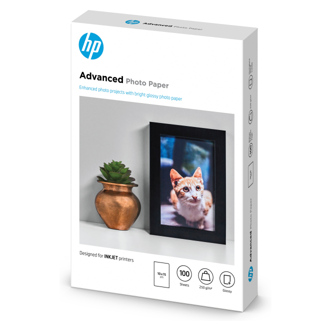 Papel fotográfico con brillo avanzado HP – 100 hojas / 10 x 15 cm sin bordes