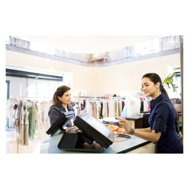 Pantalla táctil intuitiva y sistema operativo optimizado para comercio.
