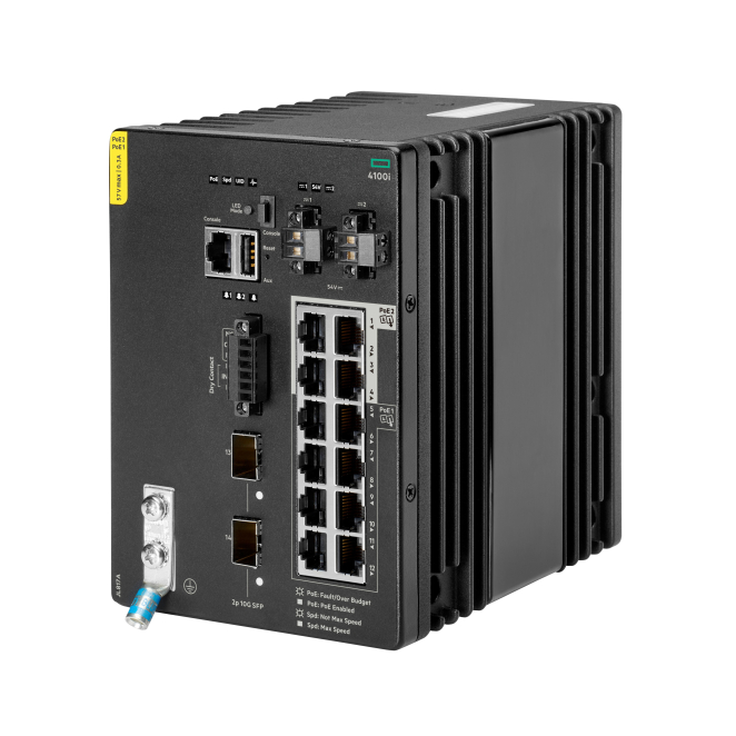 HPE Aruba Networking CX 4100i 12p 1GbE 8p Class4 PoE and 4p Class6 PoE 2p SFP+ DIN Mount Switch