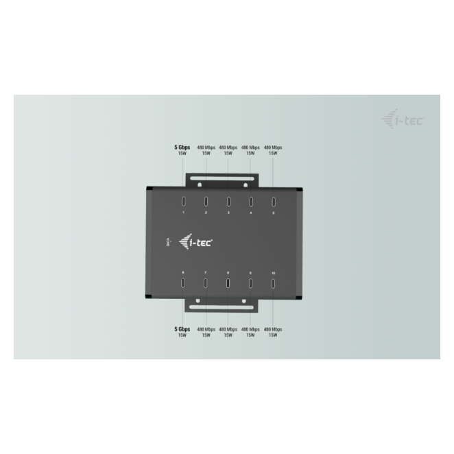i-tec USB-C/USB-A Metal Charging + data HUB, 15W per port, 10x USB-C