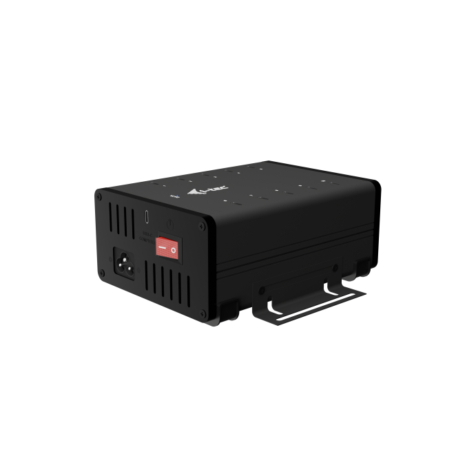 Con 10 puertos USB-C permite cargar y transferir datos a múltiples dispositivos a la vez.