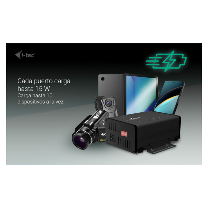 El i-tec USB-C/USB-A Metal Charging + Data HUB es una solución avanzada que permite cargar y transferir datos simultáneamente a través de 10 puertos USB-C. Con una potencia de 15W por puerto, este práctico hub puede gestionar hasta 10 dispositivos a la vez. Al ser Plug and Play, no necesita instalación de controladores, lo que lo convierte en una opción ideal para usuarios de todo tipo.