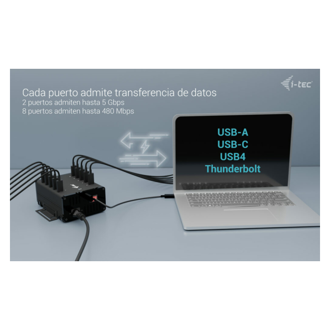 El i-tec USB-C/USB-A Metal Charging + Data HUB es notable por su facilidad de uso. Con la capacidad de conectar hasta 10 dispositivos simultáneamente, proporciona velocidades de transferencia de datos de hasta 5 Gbps en ciertos puertos. Adicionalmente, su diseño sólido y compacto facilita tanto su transporte como su instalación en cualquier entorno.
