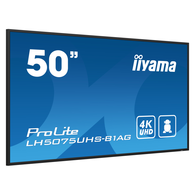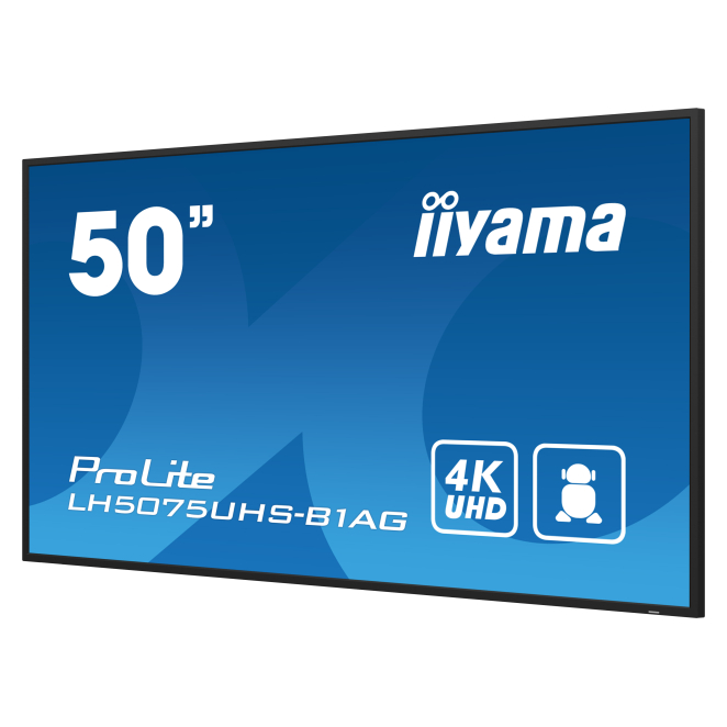 Pantalla de señalización iiyama LH5075UHS-B1AG de 49.5 pulgadas, LCD, 4K Ultra HD, 500 cd/m², procesador Android 11, color negro, uso 24/7