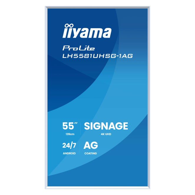 iiyama LH5581UHSG-1AG pantalla plana para señalización digital de 138.7 cm con resolución 4K Ultra HD, Wifi, 500 cd/m², color blanco y procesador Android para uso 24/7.