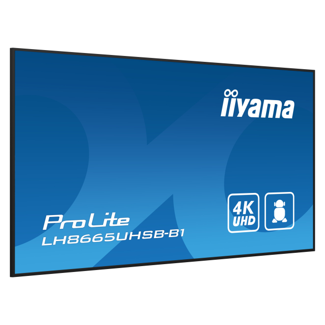 iiyama LH8665UHSB-B1 Pantalla de señalización LED de 86 pulgadas, resolución 4K Ultra HD, 800 cd/m² de brillo, color negro, procesador Android 11 y funcionalidad 24/7