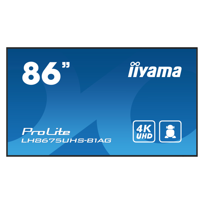 Pantalla plana iiyama de señalización digital de 2,17 metros (85.6 pulgadas) LCD con Wifi, 500 cd/m² de brillo, resolución 4K Ultra HD en color negro y Android 11. SKU: LH8675UHS-B1AG