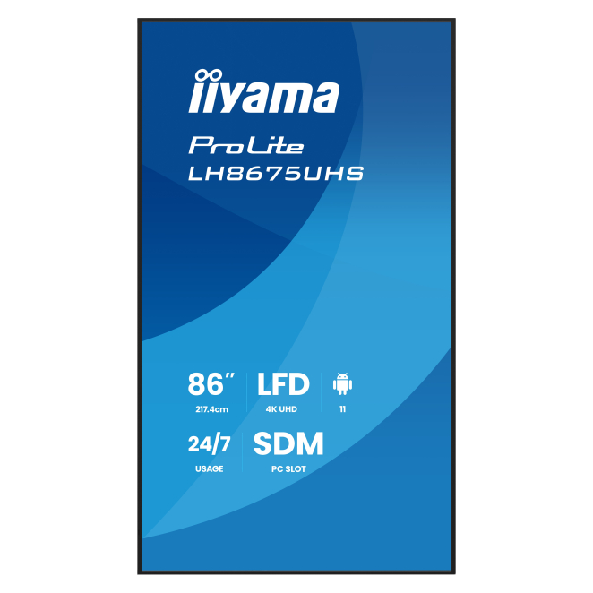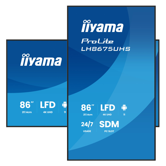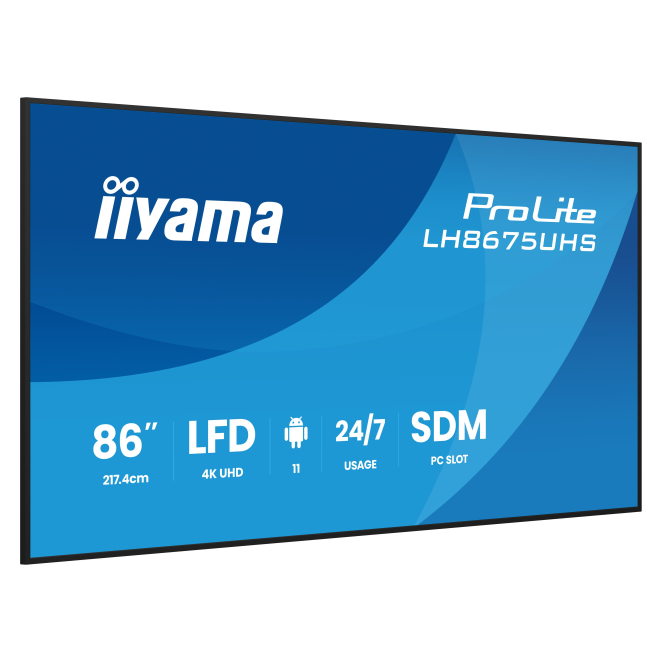 Pantalla iiyama para señalización digital de 85.6 pulgadas, 4K Ultra HD, Wifi, 500 cd/m², procesador Android 11, SKU: LH8675UHS-B2AG