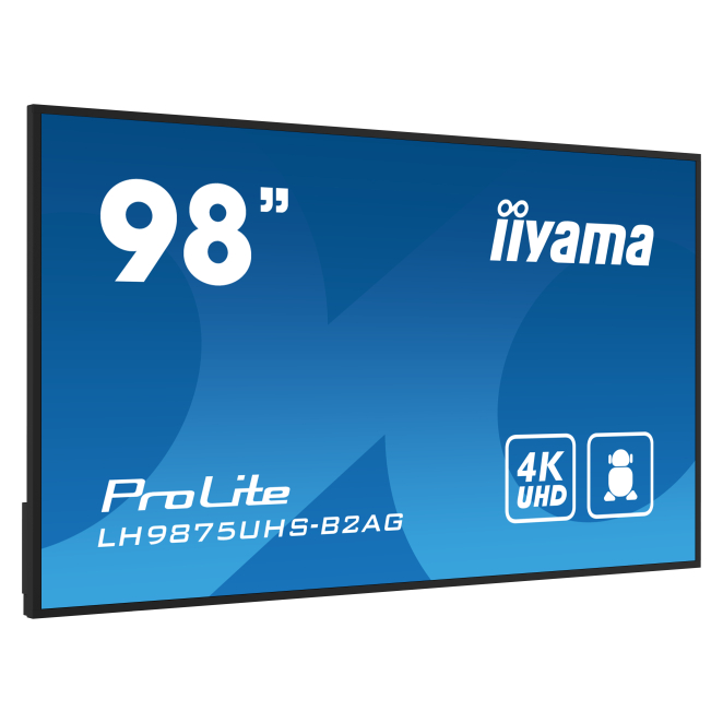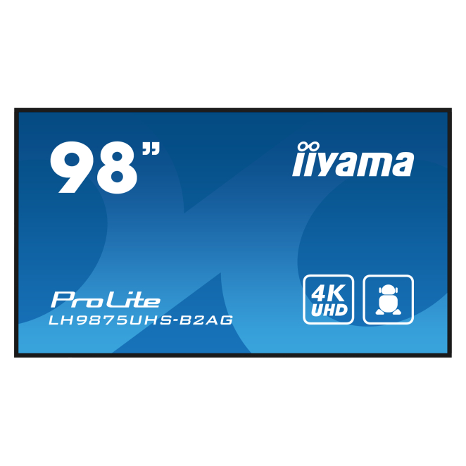 iiyama LH9875UHS-B2AG pantalla de señalización digital 97.5 pulgadas LED, 500 cd/m², 4K Ultra HD, negro, con procesador Android 11 y uso 24/7. SKU: LH9875UHS-B2AG
