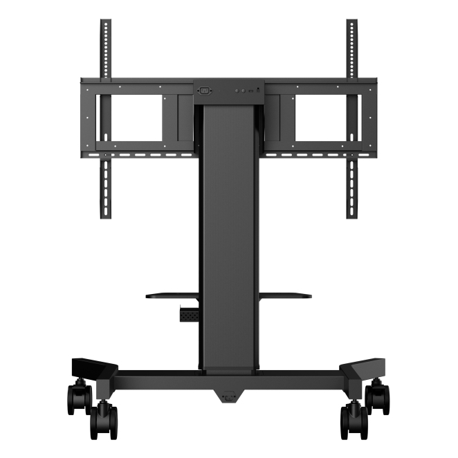 Este soporte para monitor se adapta a una variedad de tamaños de pantalla, desde 55 a 86 pulgadas, y ofrece ajustes de altura eléctricos.