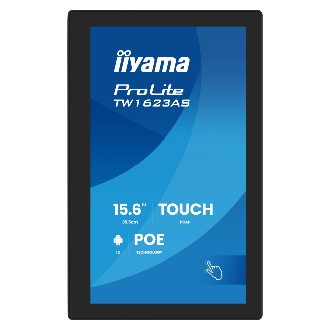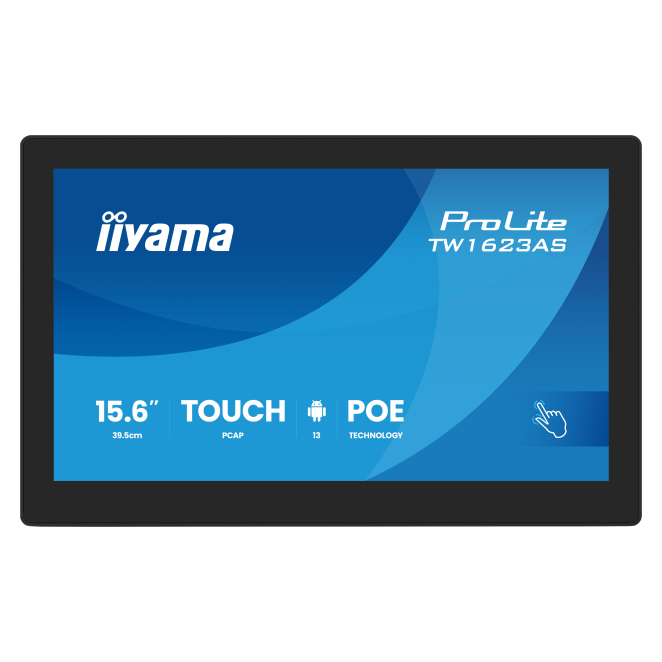 iiyama TW1623AS-B3P pantalla de señalización Panel plano interactivo 39,6 cm (15.6″) LED Wifi 450 cd / m² Full HD Negro Pantalla táctil Procesador incorporado Android 24/7