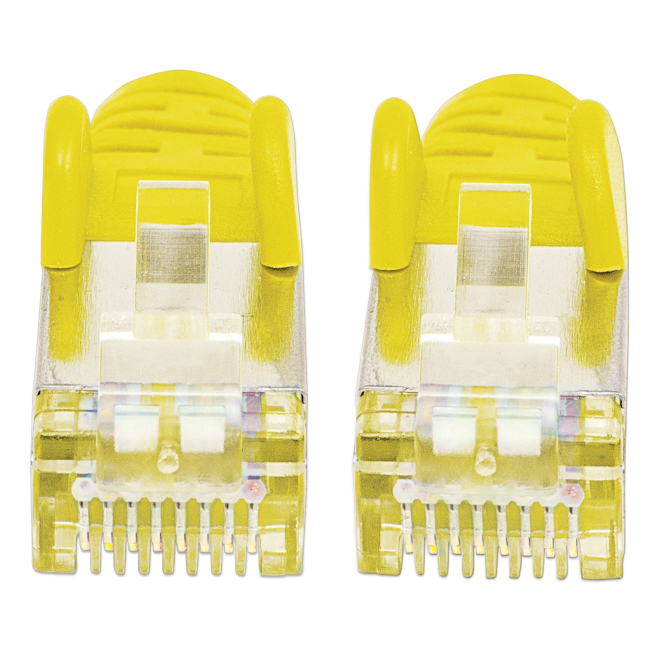 El Intellinet 350464 cable de red amarillo 0,5 m Cat6a S/FTP (S-STP) utiliza conectores RJ-45 chapados en oro para una conexión óptima.