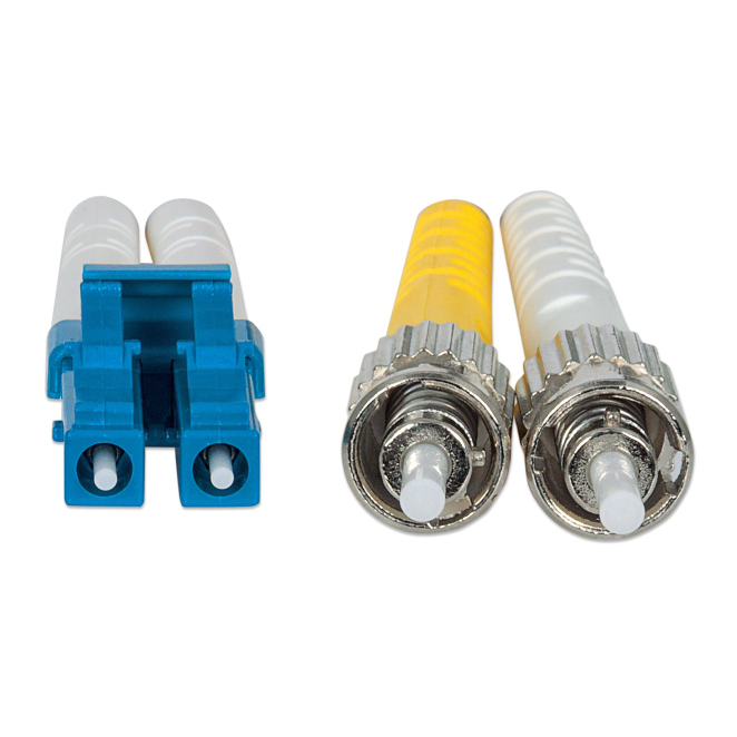 El Intellinet 474016 Cable de fibra óptica cuenta con un conector LC en un extremo y un conector ST en el otro.