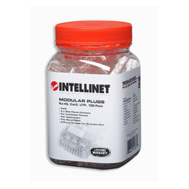 Cada paquete contiene 100 unidades del Intellinet 502375 conector RJ-45 transparente.