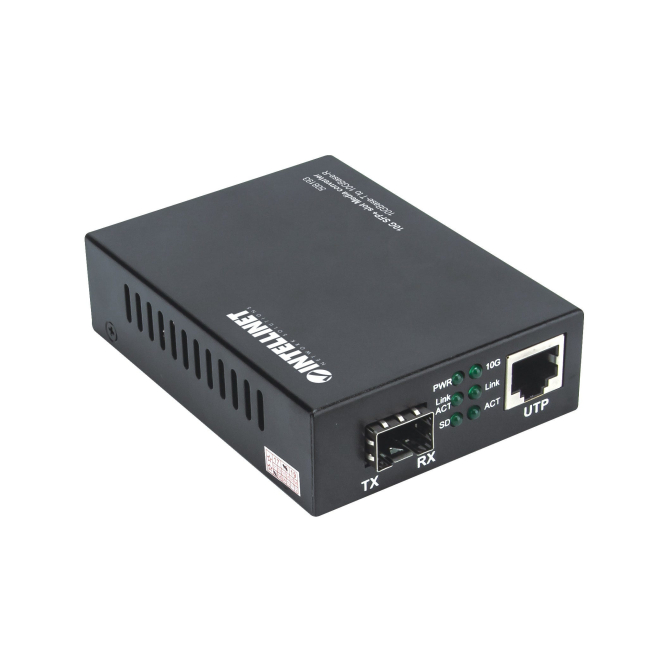 Convertidor de medio Intellinet 10000 Mbit/s en color negro con SKU 508193.